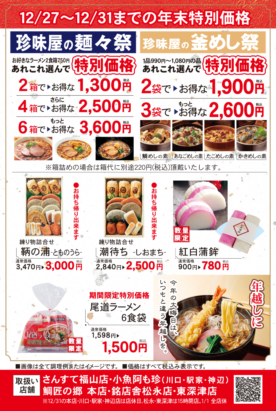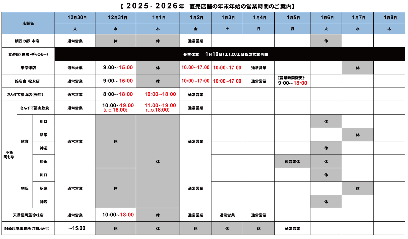 ※本店・川口・駅家・神辺は12/30までの営業